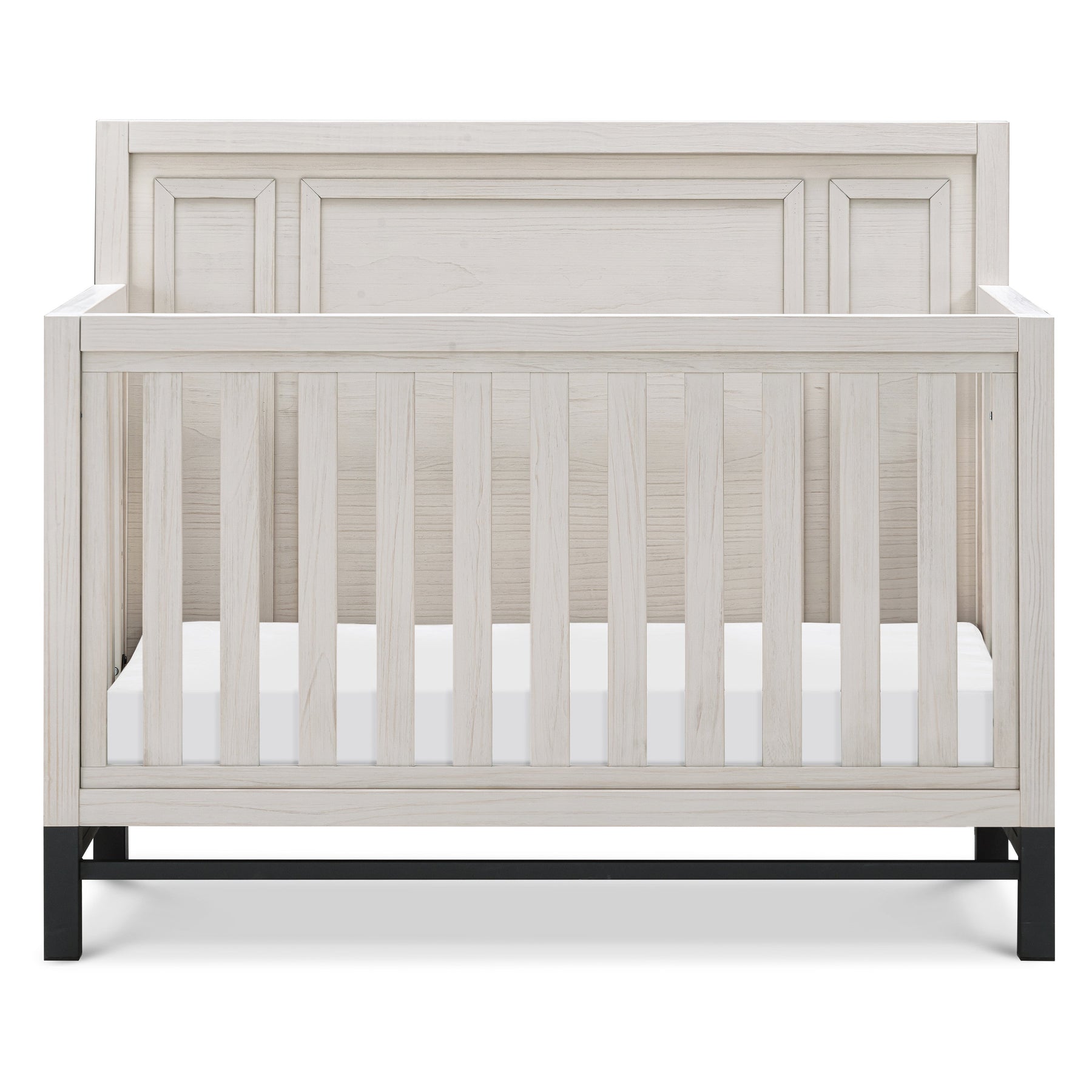 Lean into the modern farmhouse aesthetic with the Newbern 4-in-1 Convertible Crib. Featuring beautifully textured finish, streamlined metal base and contemporary trim details, this crib will perfectly complement your home. Built to seamlessly transition from newborn to toddler, the crib has four different mattress heights and easily converts to a toddler bed, daybed and full-size bed. Complete your nursery with the Newbern 6-Drawer Dresser.