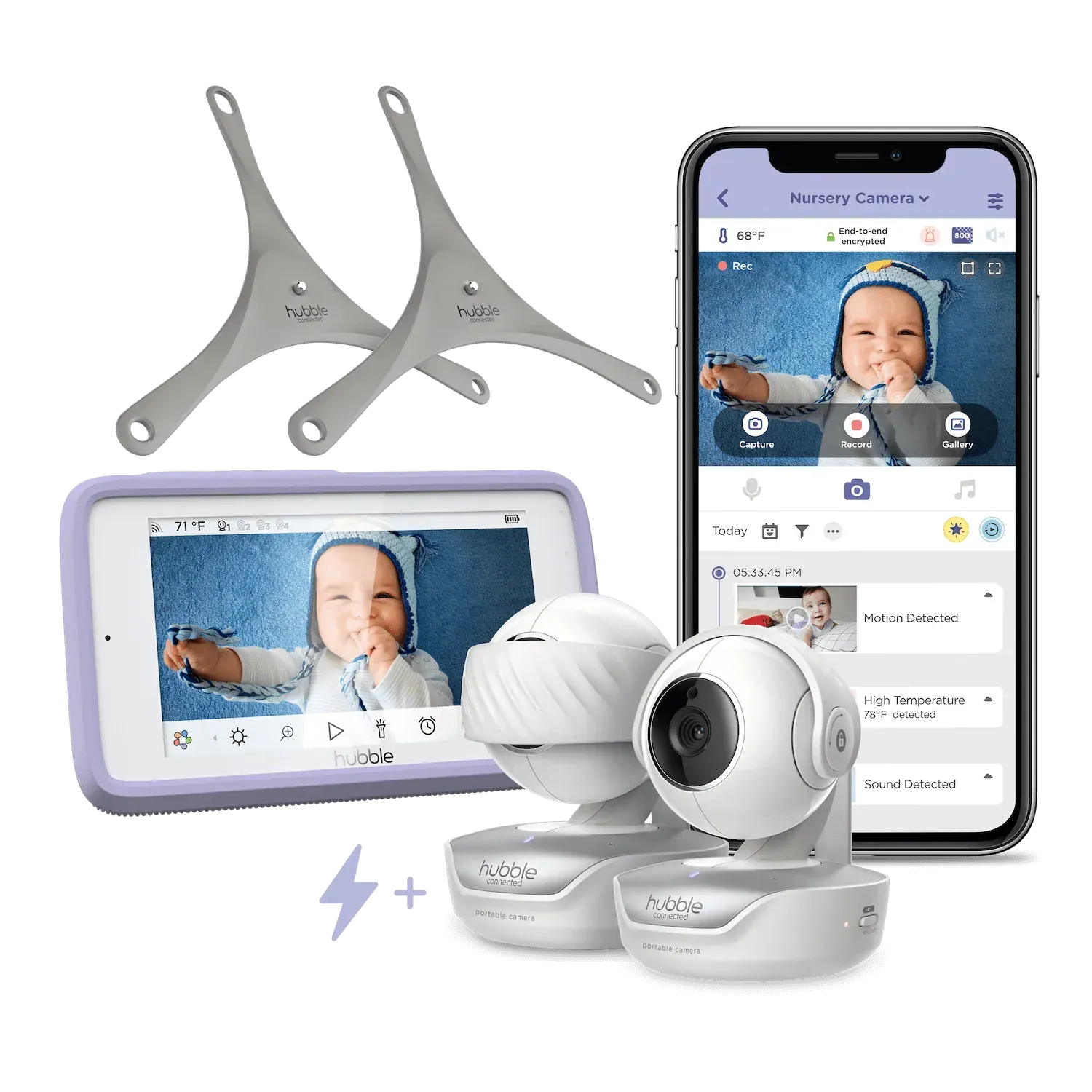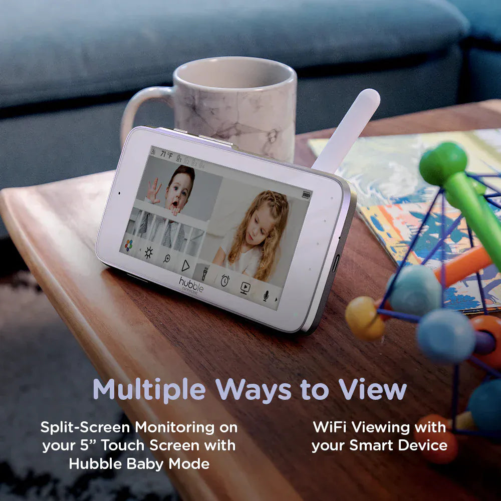 With Nursery Pal Deluxe, baby monitors are no longer just for parents. This innovative Hubble product comes with a 5" HD color touch screen that doubles as an interactive viewer for children to use as they grow, including videos, picture books and games. Use the parent monitor to quickly pan/tilt and zoom with the camera and enjoy an impressive 1000ft range. The portable camera makes it easy for you to move it from room to room without wires due to the built-in battery. Plus, the included Hubble Grip makes it easier than ever to mount the camera to any surface.