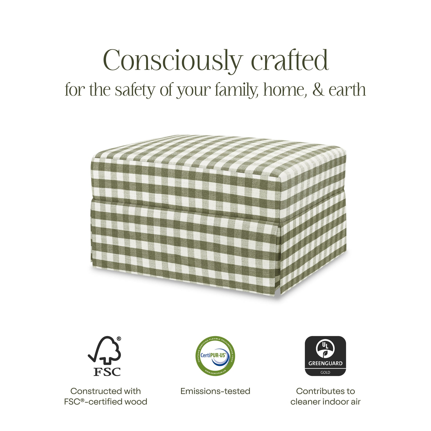 • COMFORTABLE & DURABLE: This traditional style gliding ottoman is upholstered in a durable polyester + REPREVE® blend and features a 6.5" plush but sturdy pillow top for added comfort